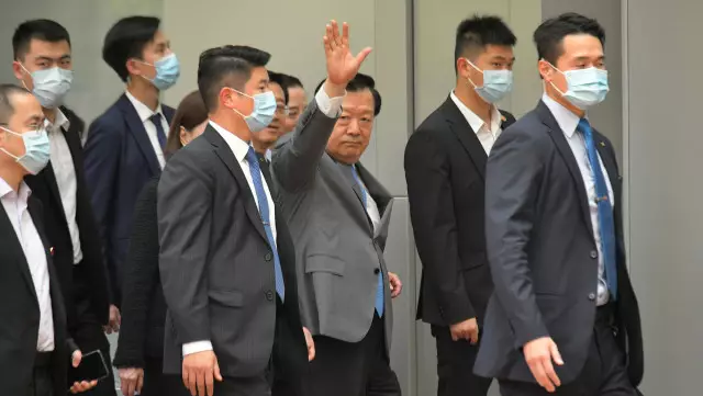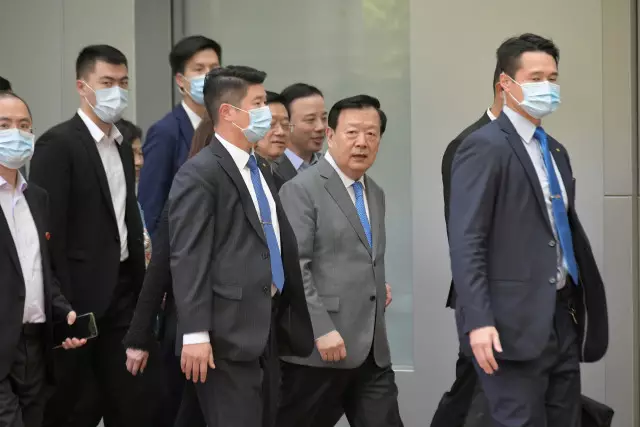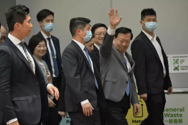 夏寶龍在特首李家超、中聯辦主任鄭雁雄等人陪同下,遊覽香港大學後離開。