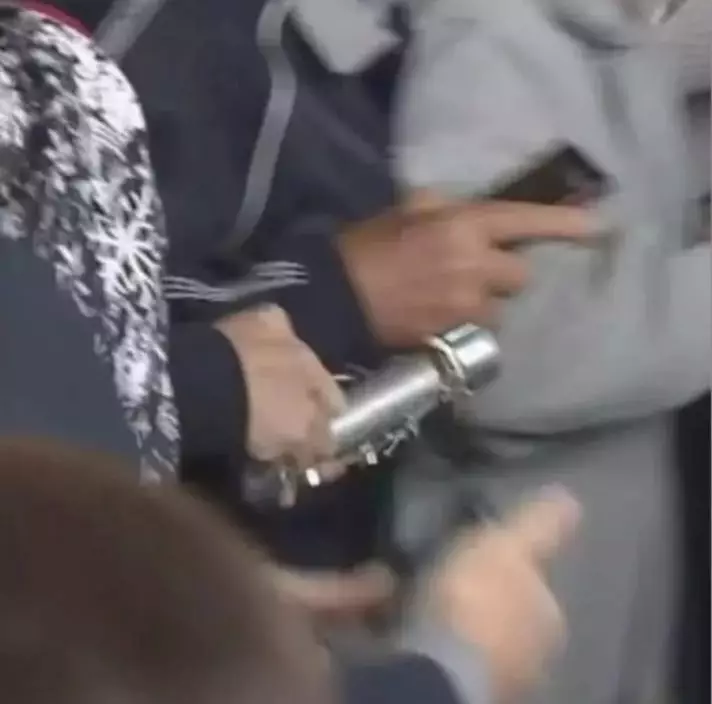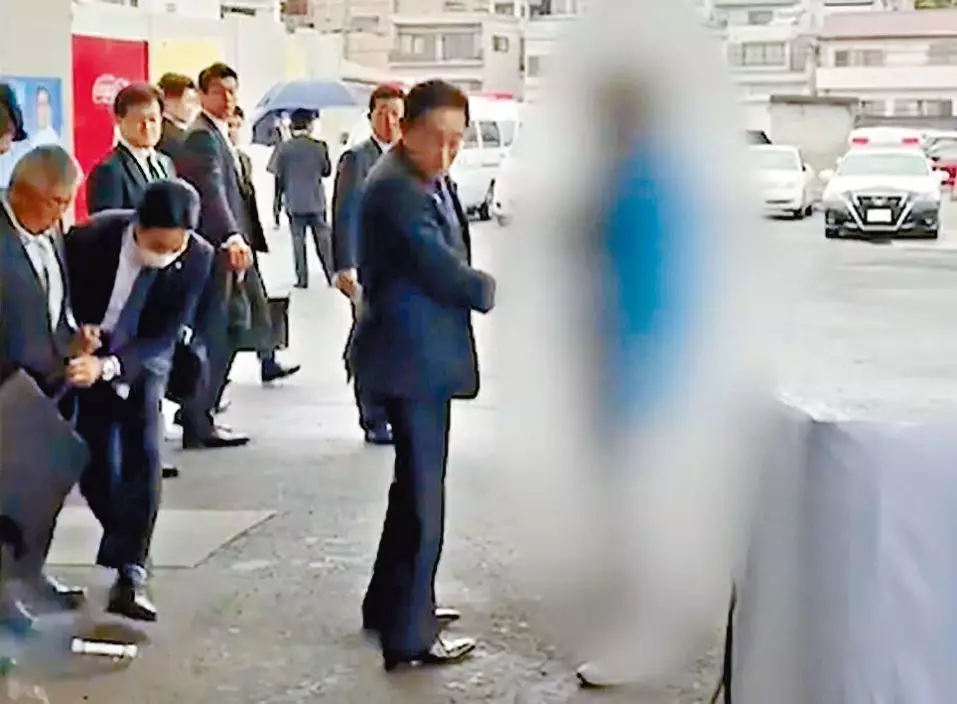 木村隆二涉嫌朝岸田丟擲銀色圓筒狀爆炸物。