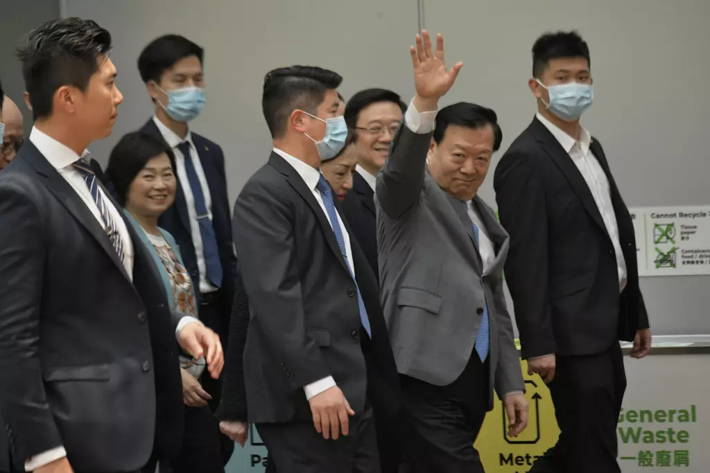 夏寶龍在李家超及官員陪同下,遊覽香港大學後離開。