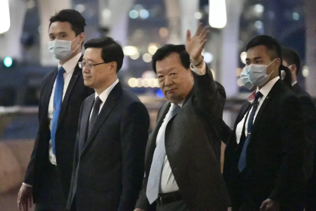 港澳辦主任夏寶龍離港,由政務司長陳國基送機。