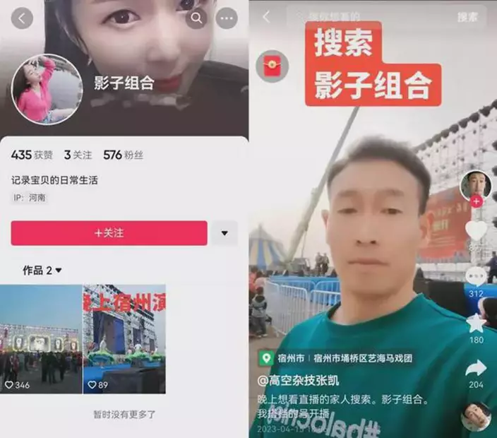 在張凱的平台上可以看到很多兩人一起表演的視頻。