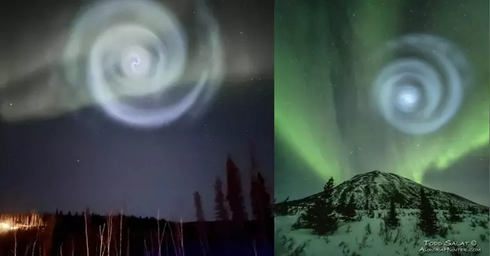 綜合美聯社、美國哥倫比亞廣播公司新聞網(CBS News)報導,拍攝極光多年的「極光獵人」薩拉特(Todd Salat)15日凌晨2時許目睹了此生首見的奇景。他在Facebook分享的照片顯示,極光的綠色光影點亮夜空、照耀覆蓋着白雪的山頭,綠色夜空中還有一團巨大藍色螺旋光,畫面相當震撼。