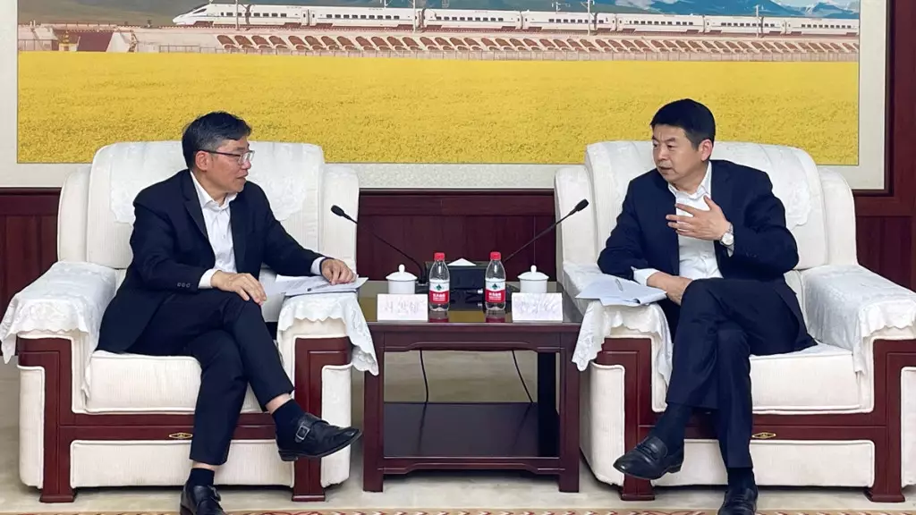 林世雄(左)與國家鐵路局局長費東斌(右)會面。政府新聞處圖片