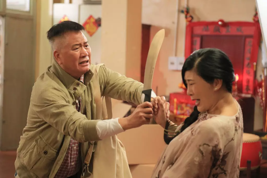 萬梓良連企定定都要人扶住,霸氣盡失。