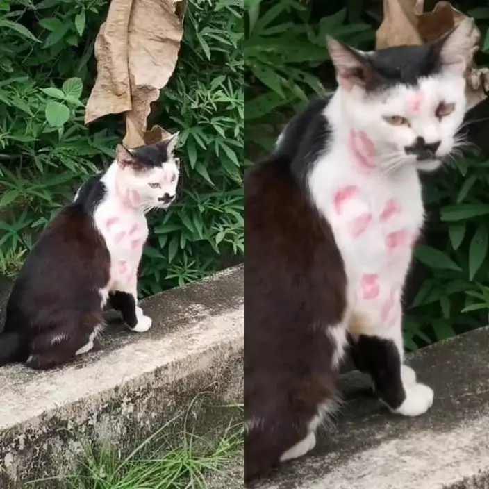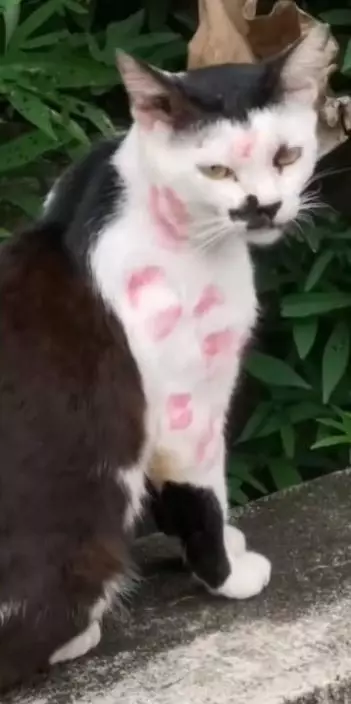 貓咪身上滿布唇印。網圖