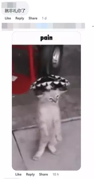 一臉無奈的貓咪像慘遭「強暴」,網民笑著唱著梅艷芳的《紅唇烈焰》落力調侃: