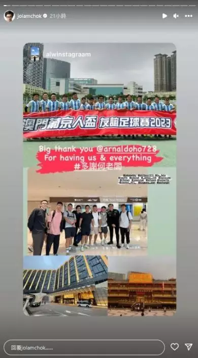 轉眼四太梁安琪已回到澳門,人稱「抽水王」的林作日前於IG貼出與四太的合照,他透露日前跟波友到澳門科技大學參加友誼足球賽,四太梁安琪則擔任頒獎嘉賓,林作更賣晒口乖寫道:「四隊比賽,經過激烈對賽,成功榮獲第四名,一球不如,被對方攻入總共5球。殿軍,好開心!因為有四太頒獎。」