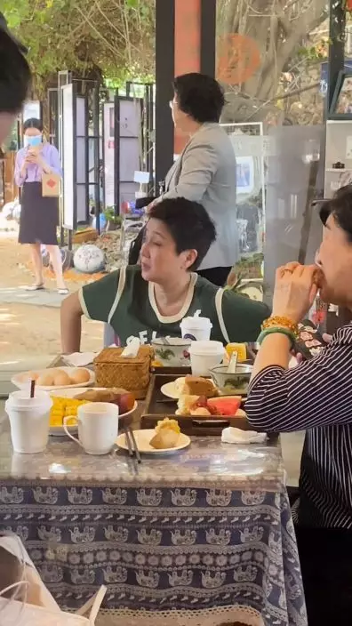 日前,有網民於湛江市徐聞縣一間平民冷飲店偶遇四太梁安琪,當時身穿墨綠Tee加長褲的她,正與兩名好友一邊傾偈一邊歎啡食早餐,全程沒有保鑣或助手護航,離開時眾人更自行收拾,低調又貼地。該網民又指,當日四太梁安琪沒有包場,與其他客人一起用餐,完全沒有架子。翻查網上資料,據悉該冷飲店人均消費只需人民幣12元(約13.7港元),價錢親民。