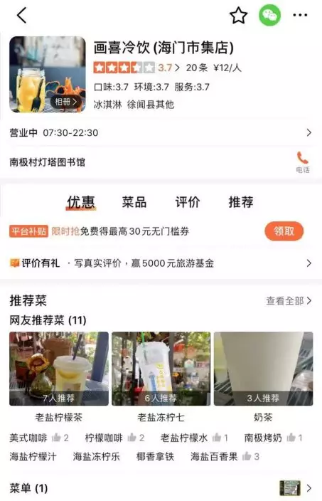 據悉該冷飲店人均消費只需人民幣12元(約13.7港元),價錢親民。