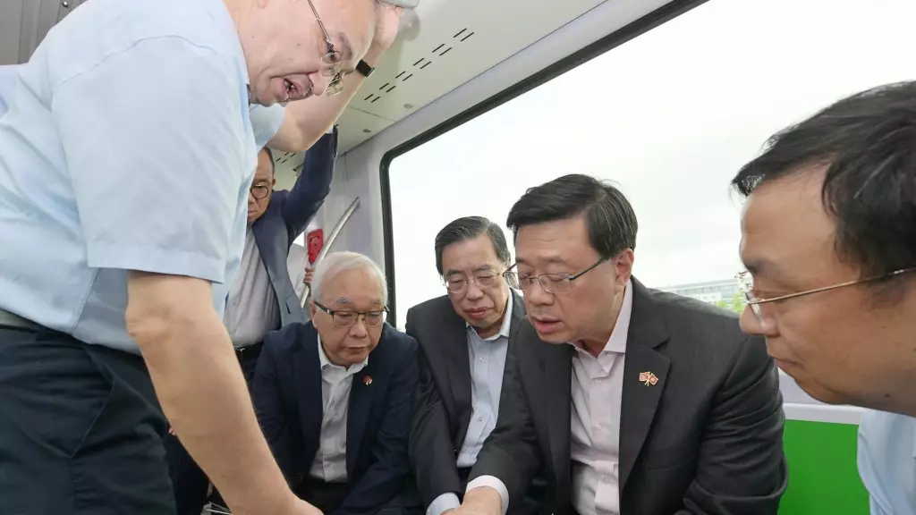 李家超和大灣區訪問團試坐「雲巴」。(政府新聞處圖片)