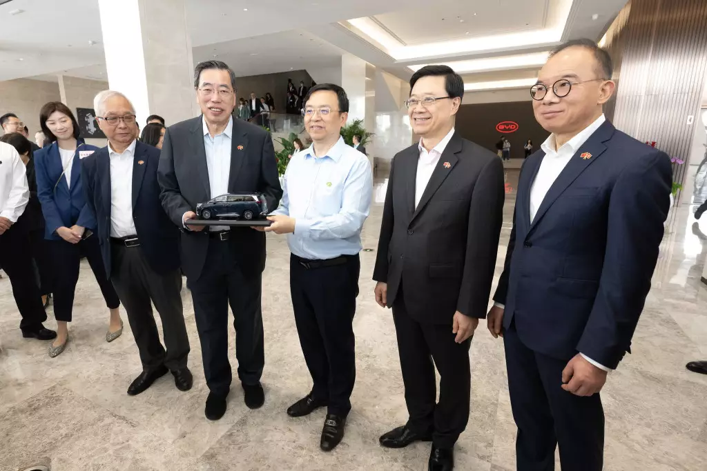 李家超和大灣區訪問團參觀比亞迪基地。(政府新聞處圖片)