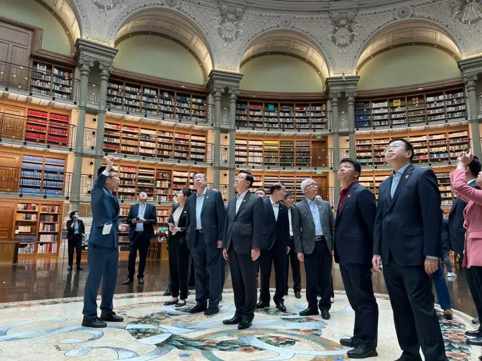 李家超一行人抵達「華為小鎮」,參觀圖書館等設施。(立法會議員提供)