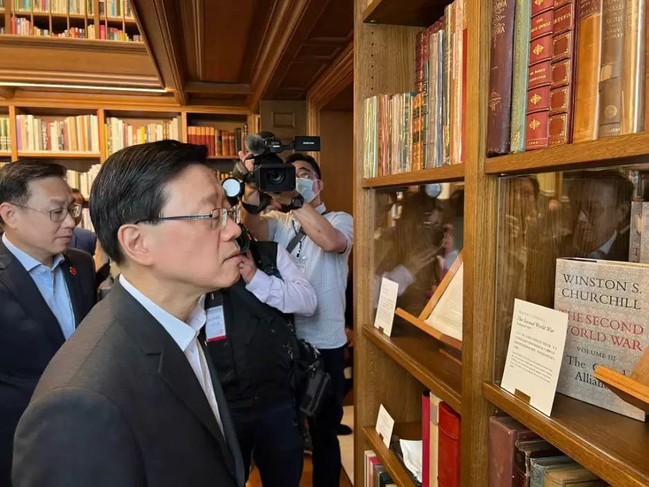 李家超特意駐足觀看邱吉爾的《二戰回憶錄》。(立法會議員提供)