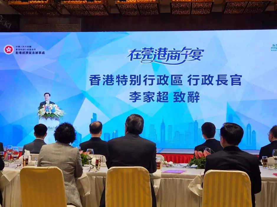 李家超於東莞松山湖凱悅酒店,與在東莞港商交流午宴。(立法會議員提供)