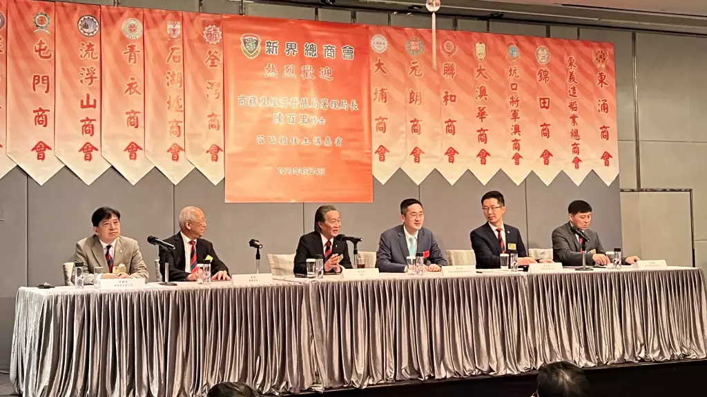 新界總商會第十四屆董事會第九次會議24日在尖沙咀舉行。商務及經濟發展局署理局長陳百里出席活動時表示,過去3年面對嚴峻考驗,疫情對各行各業都有所打擊。香港是外向型經濟,今年第一季經濟表現不理想,但在會議展覽方面,包括訂單方面是理想,相信下半年經濟表現會好。本地消費方面,上升了17%,較理想,而保就業計畫、派發消費券等措施亦對本地消費有正面作用。