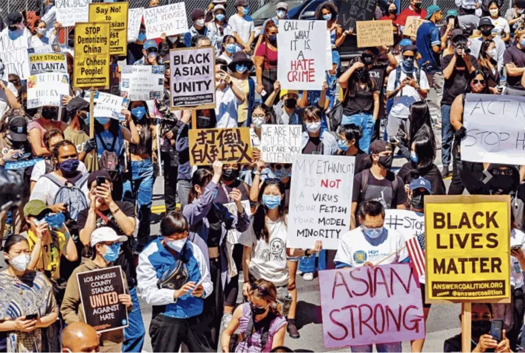2021年3月,全美約60個城市舉行示威抗議活動,要求終結反亞裔暴力。AP資料圖片