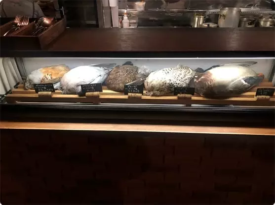 北海道札幌專營野味餐廳內陳列的野禽。網圖