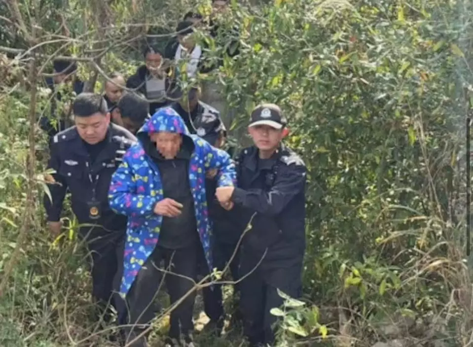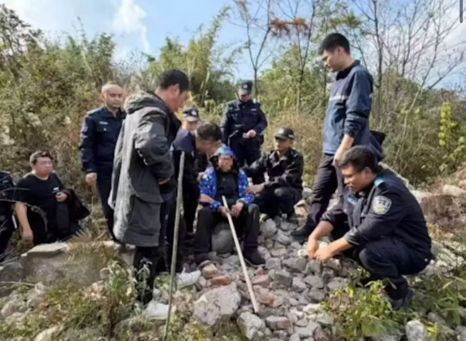 老翁因家人不讓買手機攜白酒躲進深山獲警方出動200人歷時70小時尋回。影片截圖