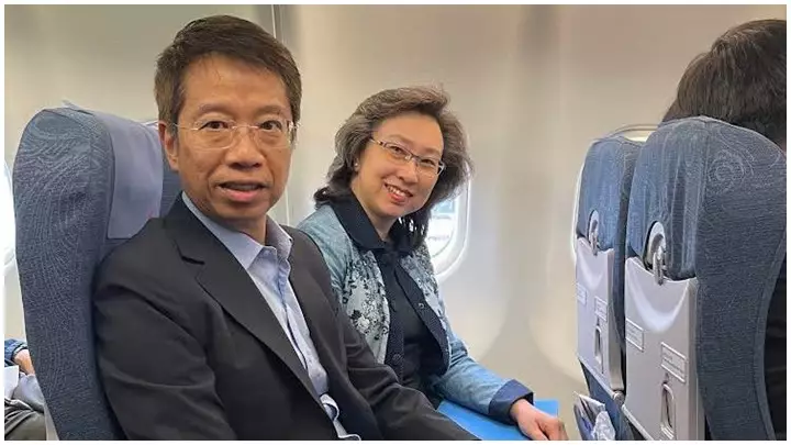 楊何蓓茵今日啟程前往北京訪問,同行包括常任秘書長梁卓文(左)。楊何蓓茵facebook圖片
