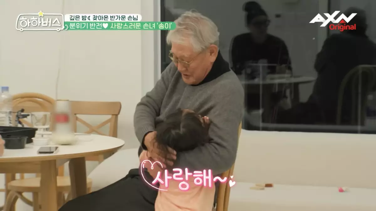 HAHA爸爸在跟HAHA閒聊時表示覺得自己活不久,因為發現自己的耳垂上出現了皺紋,聽說是腦退化的症狀所以覺得自己剩下日子不多。HAHA聽到後,不敢直視父親的眼神,只叫爸爸不要再說這樣的話。節目中的氣氛頓時變得沉重,這時候HAHA的女兒Song好像察覺到有點不對勁後,跑過去爺爺的身邊,緊貼著說:「我愛你」,更搞笑地問爺爺:「愛我多點還是爸爸多點?」HAHA一家隨即緊抱在一起,感受到家庭溫暖的氛圍。