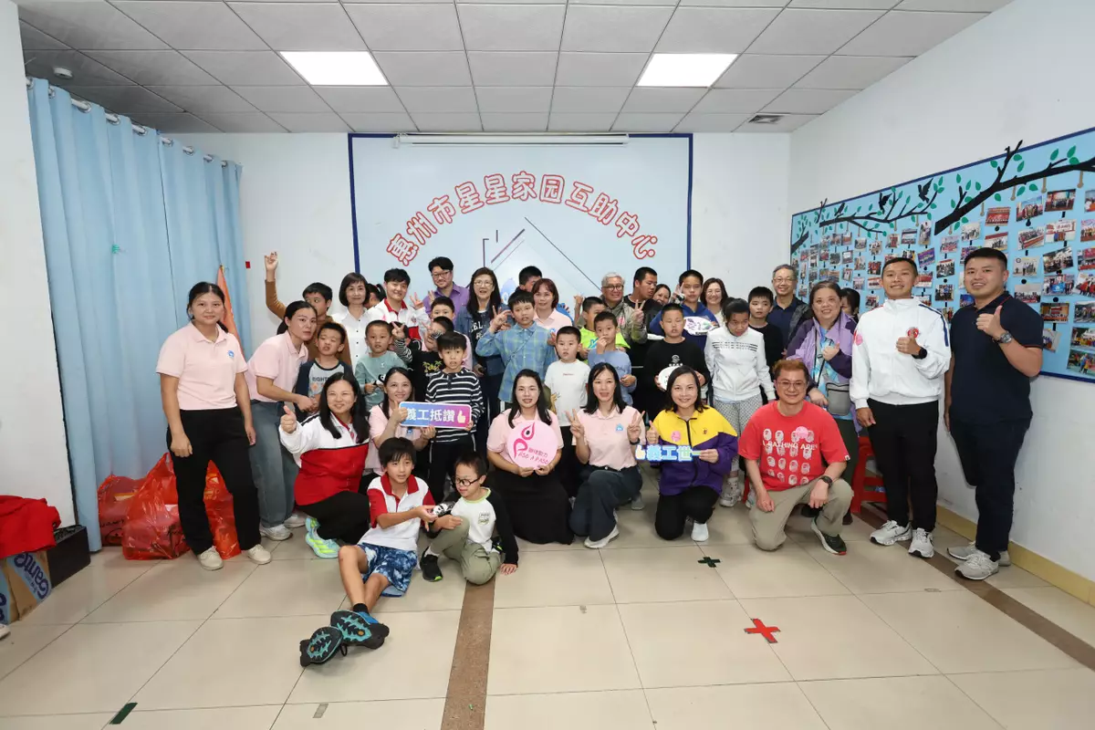 在惠州市委社會工作部的安排下,義工們探訪了成立於1995年的「星星家園」。創辦人萬老師分享,機構由最初5個家庭發展至如今服務800個家庭,一直以「有錢出錢、有力出力」的互助模式運作。義工透過座談、互動遊戲及手工藝活動,與孩子建立真摯聯繫。現場笑聲洋溢,不少義工感慨:「原來陪伴,就是最好的禮物。」