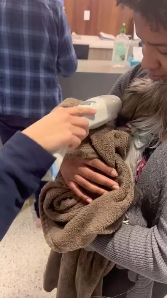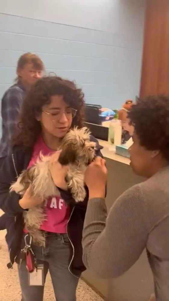 狗狗脫困後,Ashley喜極而泣,緊緊的抱着小狗,並驚訝的表示,她是從家中開車前往體育館上班,路程長達48公里,需時約30分鐘,但她都完全沒有發現車內藏了一隻小狗。