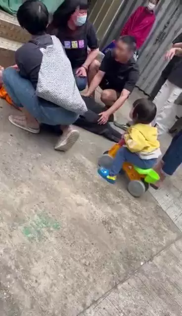 熱心街坊在旁不斷叫「醒啦唔好瞓呀」。網上片段
