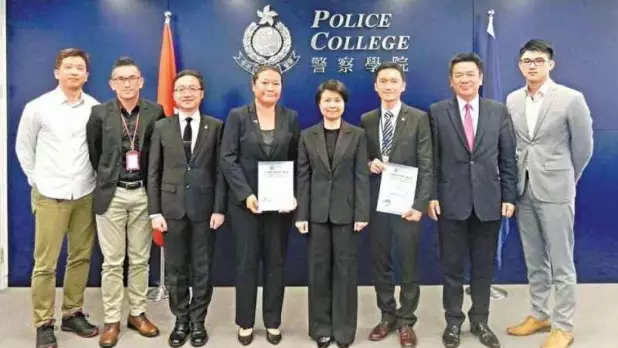2017年,時任警察學院院長劉賜蕙(右四),表揚學院優秀教官卓越教學成就,及勉勵教官在教學崗位上繼續努力。(警方提供)