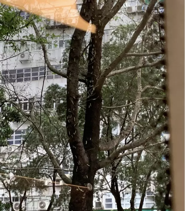 有柴灣街坊於柴灣道的一棵大樹上發現大量青綠色毛毛蟲。