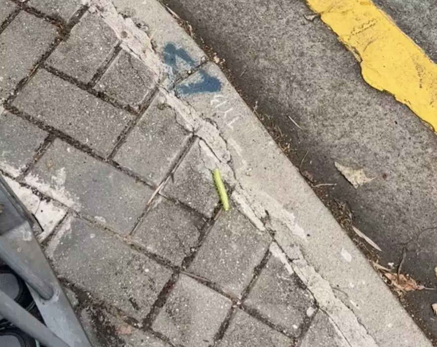 有些毛毛蟲會爬到地上,一不小心便會踩到牠們。