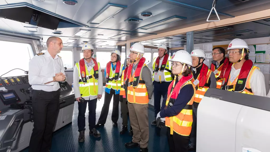 環境及生態局局長謝展寰28日參觀位於香港西南水域的海上液化天然氣接收站及浮式儲存再氣化裝置船,並聽取中電及港燈就海上接收站項目的最新發展報告。