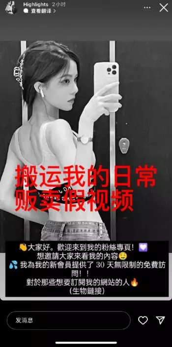 據「Caro賴賴_」稱,有不法份子先在境外社交媒體上冒充她註冊假帳號,透過搬運她的帳號日常的內容,累積一定粉絲,然後便會以會員訂閱的方式販售「虛假的涉黃影片」,讓她驚訝的是,在另一個社交網站,製作AI盜臉的人很多。