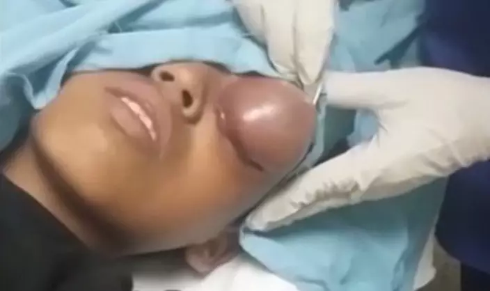 薩爾瓦多一名男童左眼上眼皮生了一顆異常巨大的眼瘡,令他無法睜開眼睛。他其後被送往醫院把巨瘡割掉時,大量膿液不停湧出,場面可怕。
