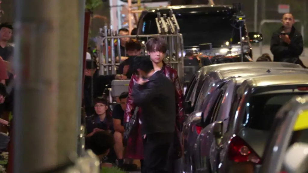 凌晨踏入生日的一刻,姜濤在將軍澳工業邨開工,見他穿上彩色短袖恤衫加皮褸,再配上黑色手套加大條銀頸鏈,都幾有古惑仔Feel!由於當晚拍攝爆破場口,現場需封街及拉上黑幕拍攝,又出動水車,雖然劇組必須要安排替身拍攝危險場口,但很多鏡頭姜濤都堅持親身上陣,未Roll機前,姜濤不時和導演及工作人員溝通,細心聆聽講解走位,姜濤和演員對戲試位,待一切準備就緒,導演嗌Roll機,手持道具槍械的姜濤和演員在私家車旁跑了一會,姜濤隨即仆在地上,還要多角度拍攝,但姜濤仍面不改容,每完成一場戲份,更緊張地睇playback,非常緊張自己的演出!