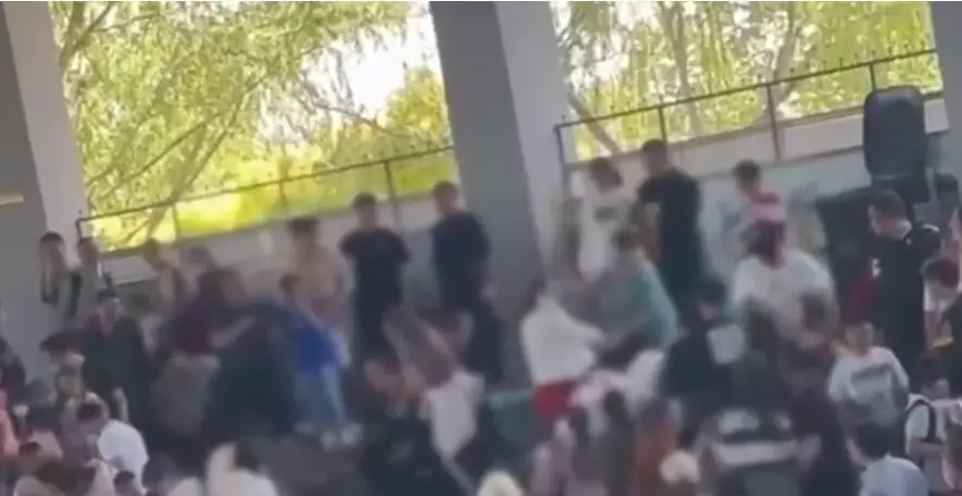 動物園看台上似乎有兩批人發生衝突,互相打鬥起來。