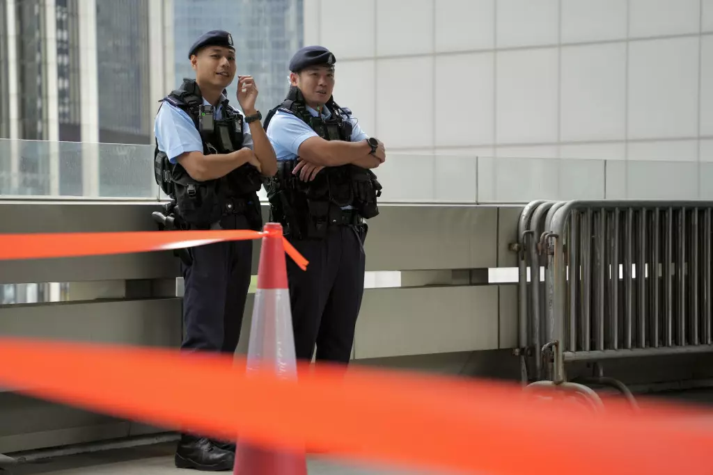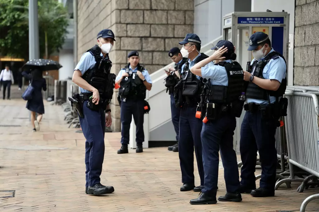 黎智英提出永久終止聆訊案2日開庭。警方在法庭外戒備