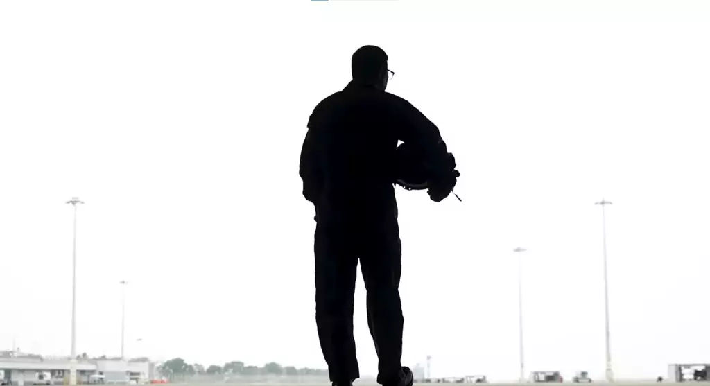 鄧炳強介紹「獵豹直升機」。其中一幕背影超似電影《Top Gun》系列中的湯告魯斯(Tom Cruise)。鄧炳強FB影片截圖