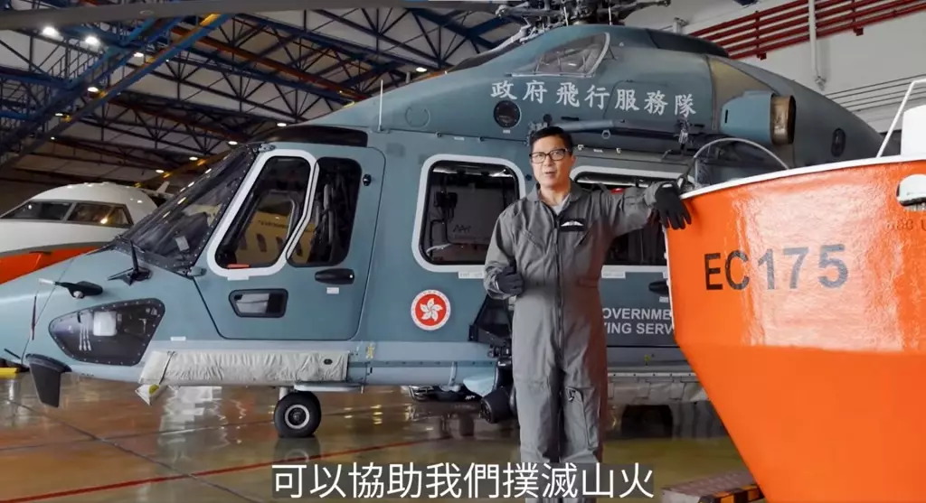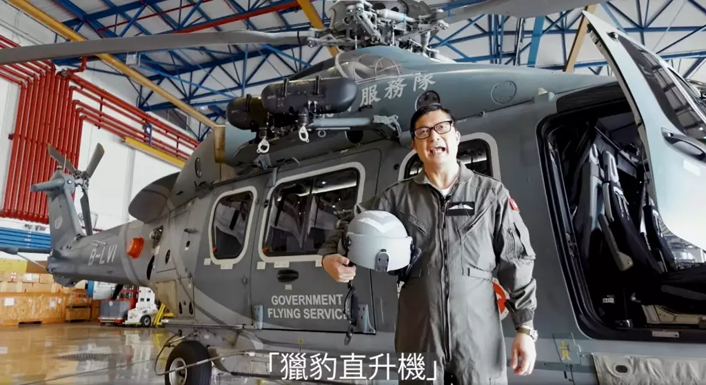 保安局局長鄧炳強在社交網站上載影片,介紹隸屬於政府飛行服務隊負責執行空中拯救任務的「獵豹直升機」。鄧炳強FB影片截圖