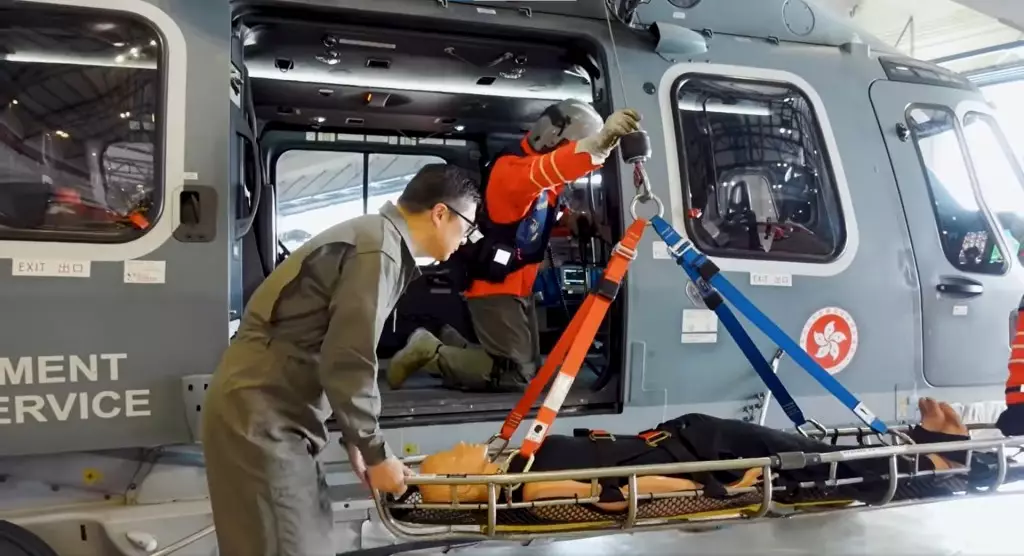 鄧炳強亦在片中示範使用吊床運送行動不便的傷者,當中的搜救吊運專用絞車均附有一條290呎長的鋼索,它們的安全負重可達550磅,即使連同救援人員、傷者以及吊床一併吊起亦非常安全。