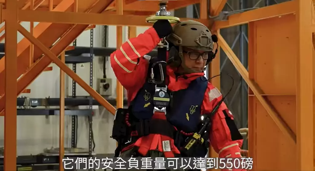 當中的搜救吊運專用絞車均附有一條290呎長的鋼索,它們的安全負重可達550磅。鄧炳強FB影片截圖