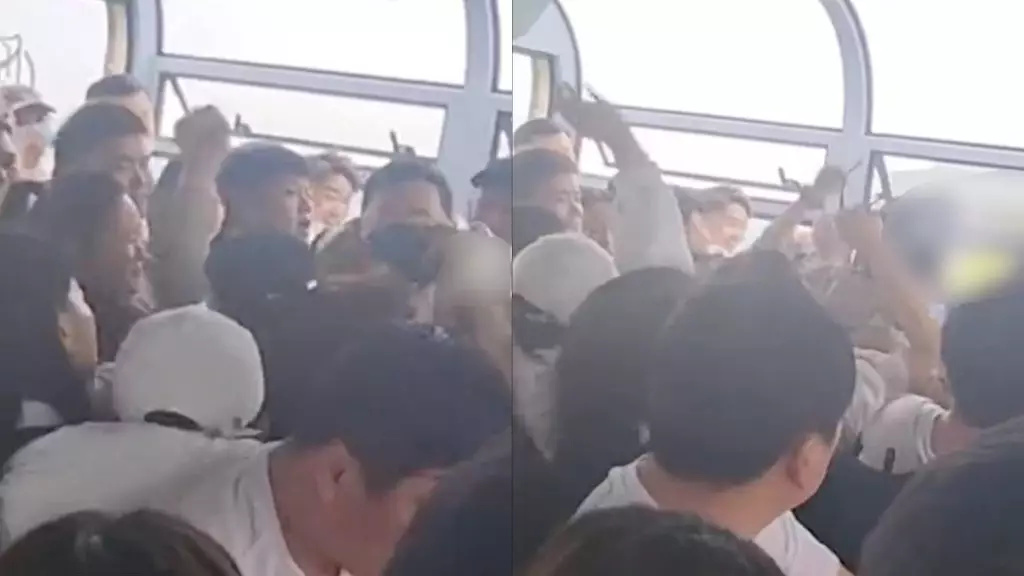 從網上影片見,當時纜車內一整車擠滿遊客,其中數人發生爭執,罔顧其他百餘人的安全,邊罵邊打架,周圍遊客攔都攔不住,車廂裡夾雜著打架聲、叫罵聲、驚呼聲及小孩害怕的哭喊聲。