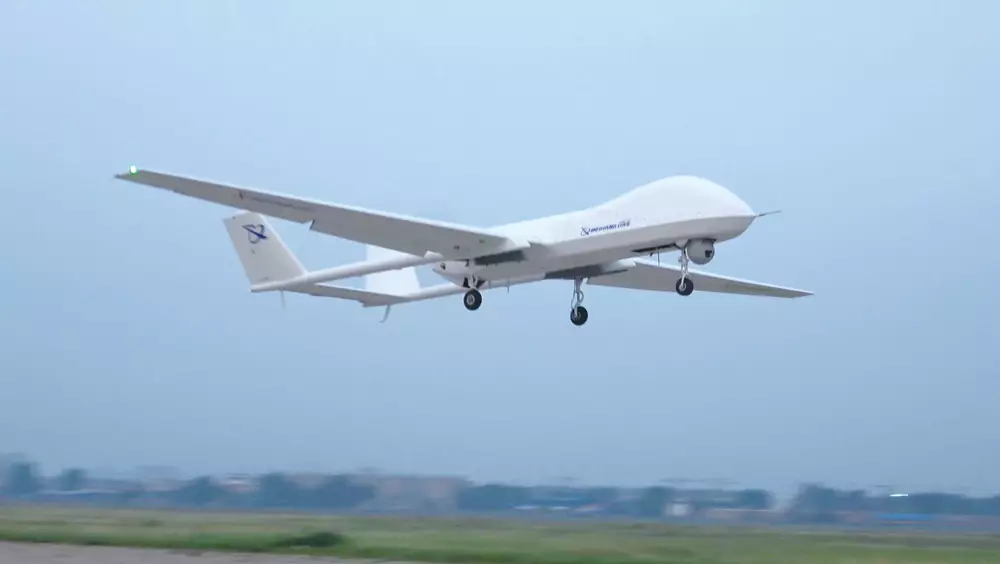 可滯空超過四十小時的高空遠程偵察無人機「BZK-005」,其被稱為中國版的「全球鷹」。新華社圖片