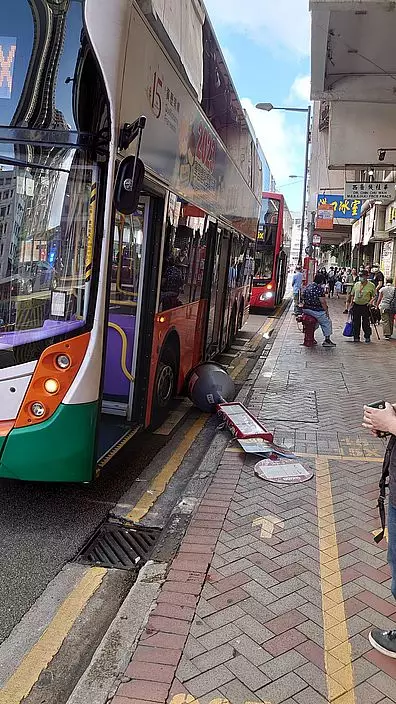 一輛新巴撞倒巴士站牌,砸傷候車女子。