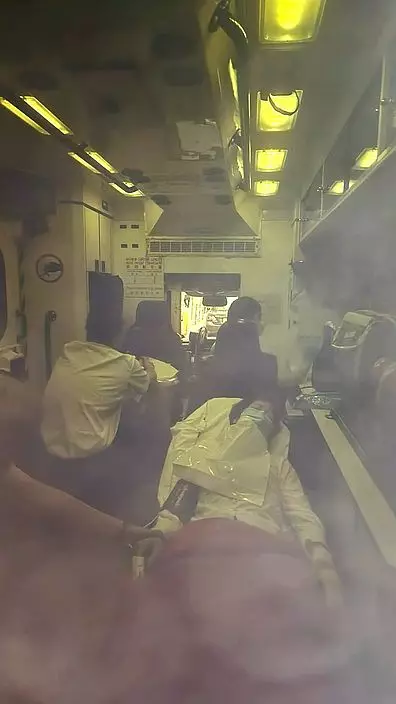 女事主登上救護車接受治理。