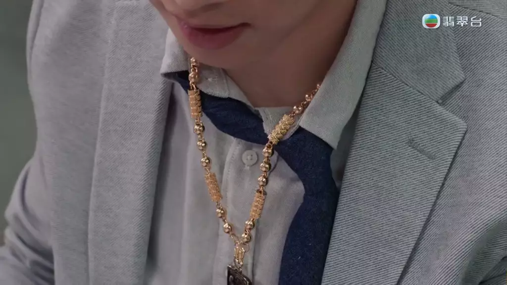 在劇中做了麥玲玲契仔的容天佑即有極粗金鏈戴。