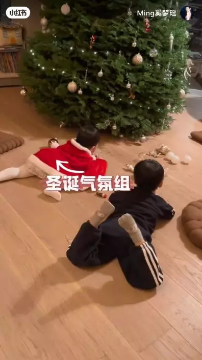奚夢瑤生活好有儀式感,聖誕節在上海豪宅與子女一同佈置聖誕樹。