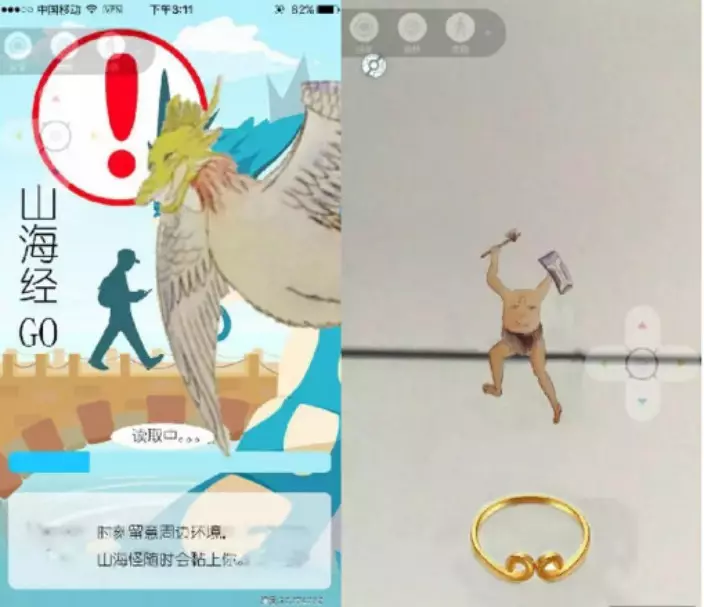 「山海經GO」遊戲截圖近日在網上瘋傳 ,界面雖與原版相似,但是甚富中國風味,寵物小精靈全部變成《山海經》神魔鬼怪,包括女媧和龍人等,精靈球則換成孫悟空金鋼箍。