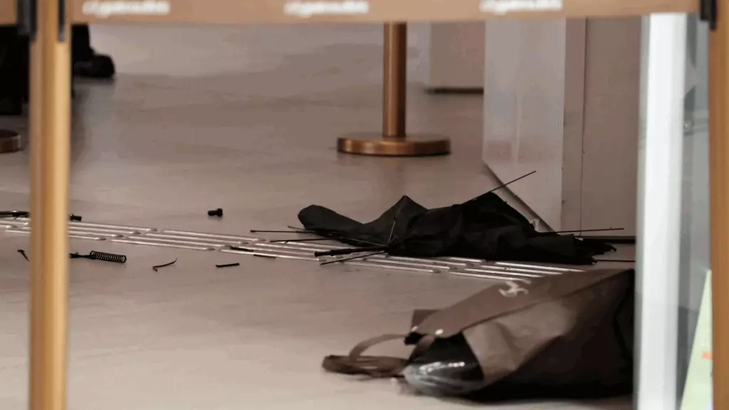 警方事後封鎖現場進行調查,現場所見,地上遺下一個相信屬於男童父親的環保袋,旁邊則有一把黑色雨傘,碎片散落一地,地上亦遺留少量血迹。