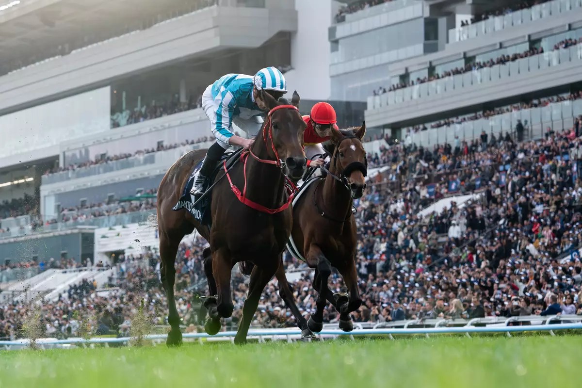 世界王者「浪漫勇士」(左)擊敗海外賽駒「寶徠歌劇」,連續四年攻下一級賽浪琴香港盃,締創歷史,並同時把其累積獎金增至二億四千萬港元,繼續成為全球贏得最多獎金的賽駒。香港賽馬會圖片