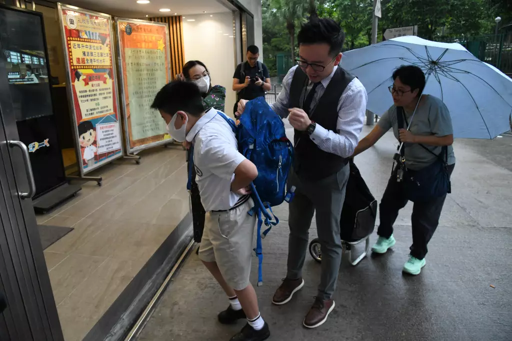 今早記者採訪家長時,該校教師以「學校會統一發放消息」為由,請家長離開。
